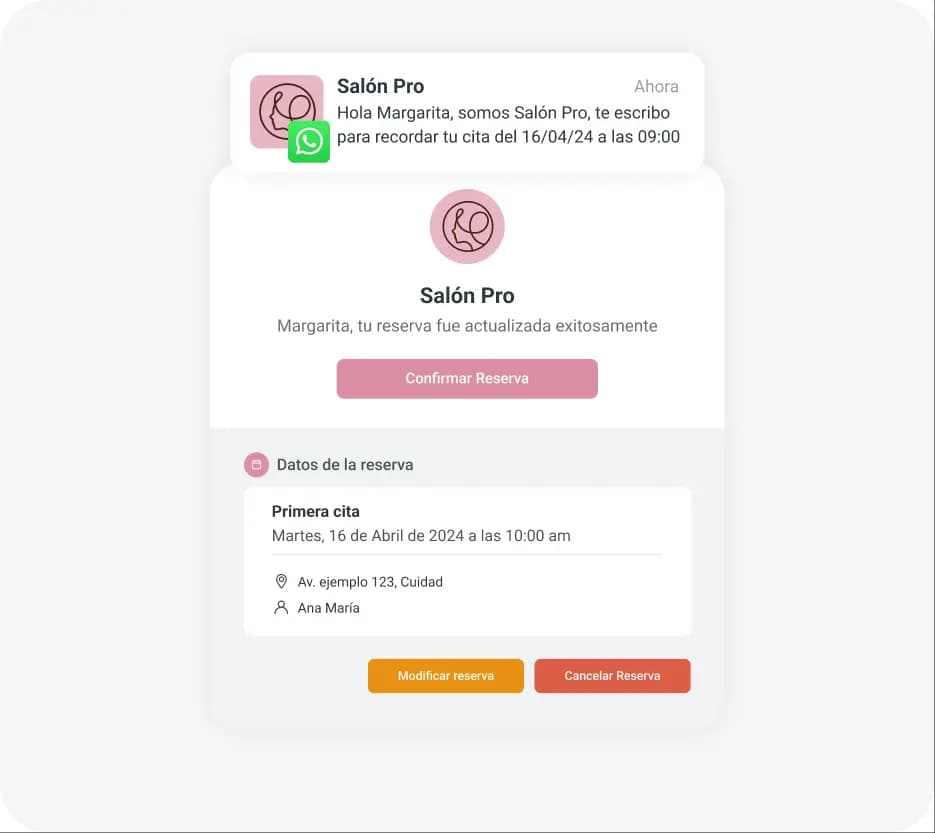 • Envía recordatorios automáticos para cada reserva realizada, reduciendo ausencias.