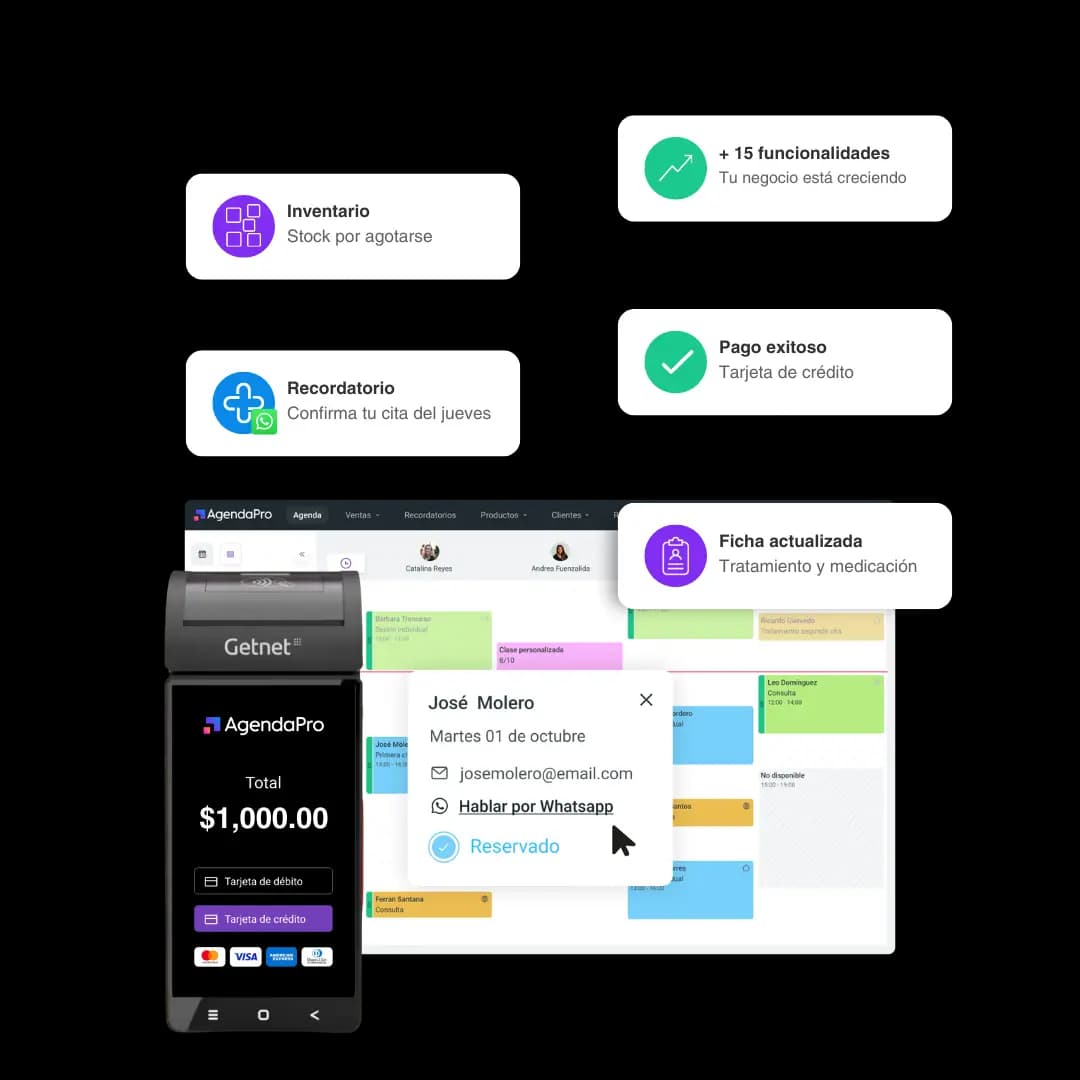 Gestiona tu agenda, fichas de cliente, finanzas, comisiones, inventario, recordatorios y más en una sola plataforma